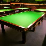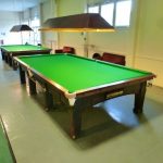 Sew 4 inch by 4 inch L shape tear on full size Antique snooker table at a club in Derby .