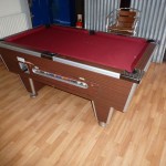 We have just completed a third re-cover for our most loyal client. The table is a very nice Riley Aristocrat in light oak with the standard cushions but with match play 3.5 inch pocket openings. Many snooker tournament finals have … read more