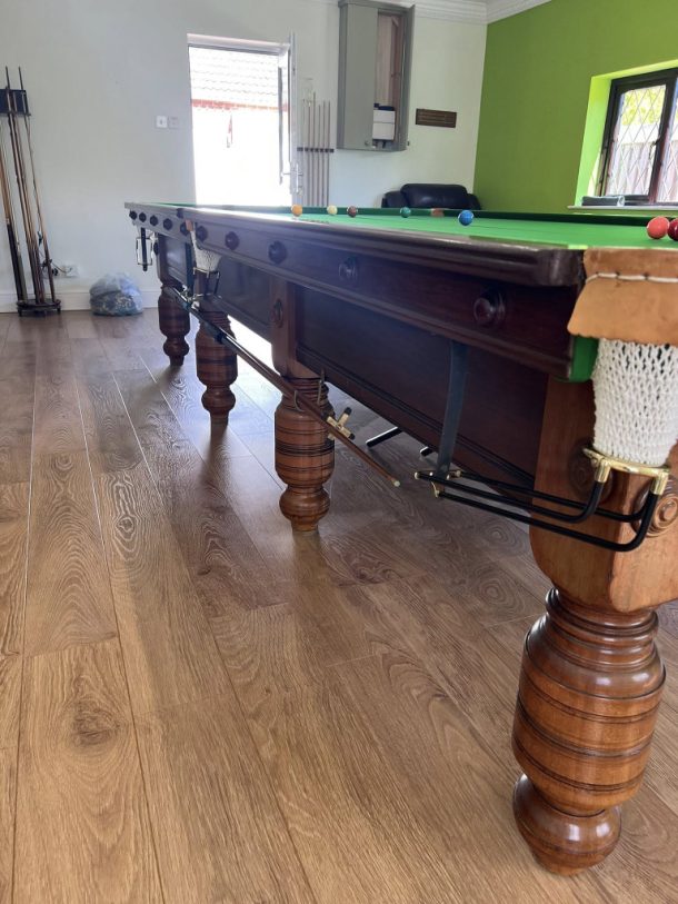 Do not listen to firms who say they can jack up a full size table and wheel it to a new position. This will damage the slate joints and your carpets or flooring and may snap the legs in the process too.
