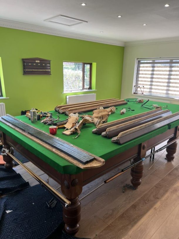 This table only required moving 6 feet, but it still required a full strip down of slates off the frame to move it safely without damage to slate joints.